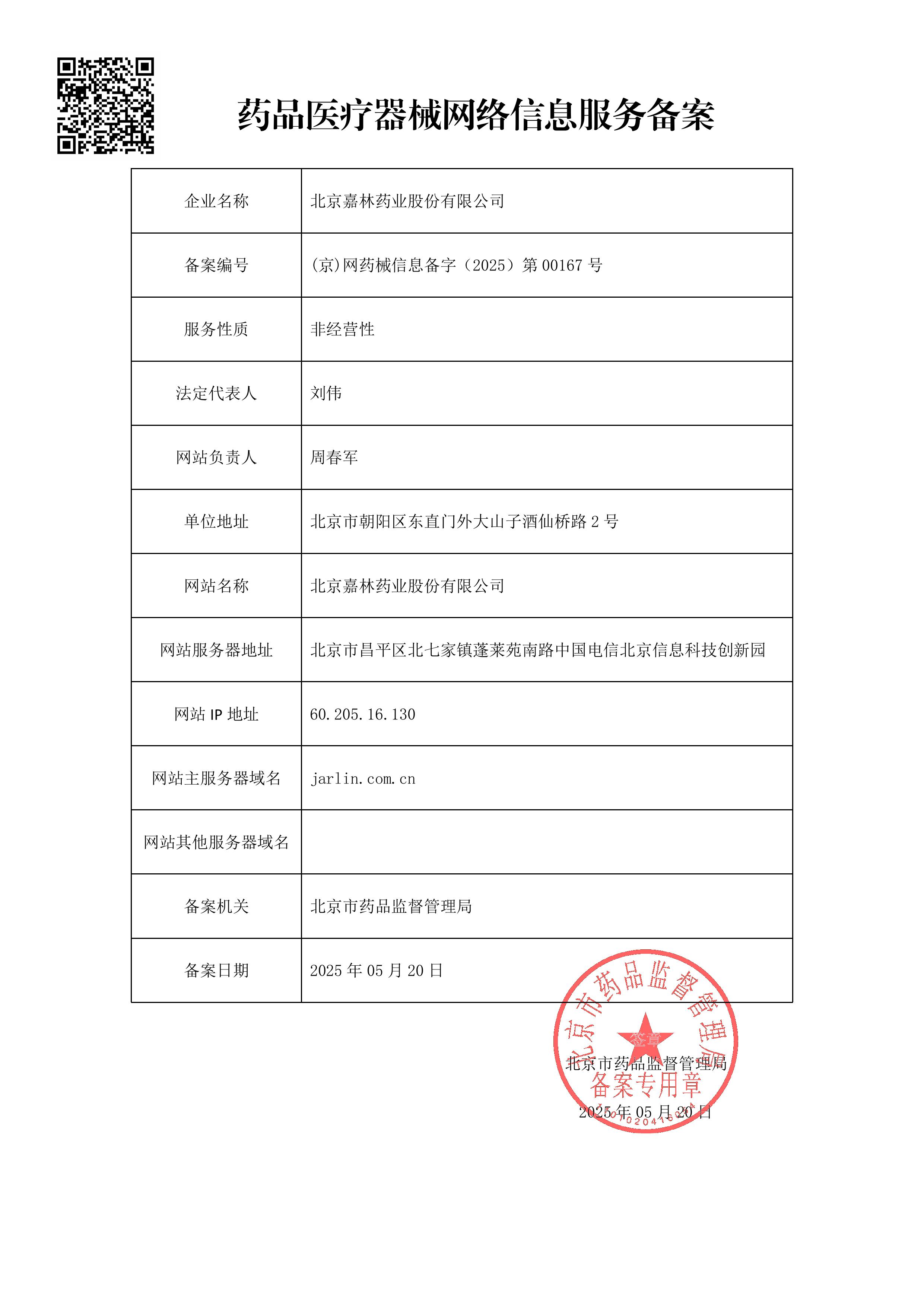 (京)網藥械信息備字(2025)第 00167 號